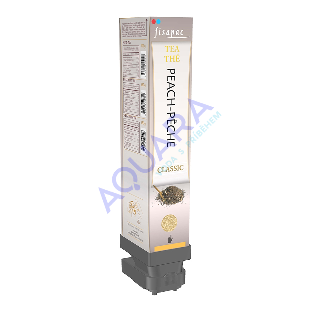 Rozpustné nápoje do firmy Fisapac jsou vždy zárukou nejvyšší kvality. Ani tento lahodný rozpustný broskvovo-meruňkový ledový čaj není výjimkou. Při dodržení doporučeného dávkování si budete moci vychutnat autentickou chuť broskví a meruněk. Kvalita nápojů značky Fisapac tkví zejména v poctivé výrobní receptuře, v kvalitních surovinách a v dlouholetých firemních zkušenostech s výrobou rozpustných nápojů nejvyšší kvality. Ledový čaj je nabízen ve formě hermeticky uzavřených jednorázových patron s praktickým dávkovačem doporučených dávek. Patrony lze použít v mnoha typech výdejníků vody, jsou ideální kupříkladu k výdejníku vody typu 1-5TB se zásobníkem na 5 nápojů.