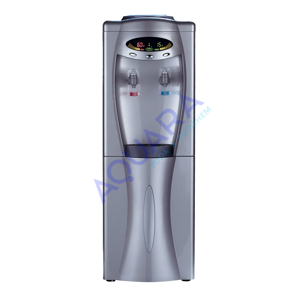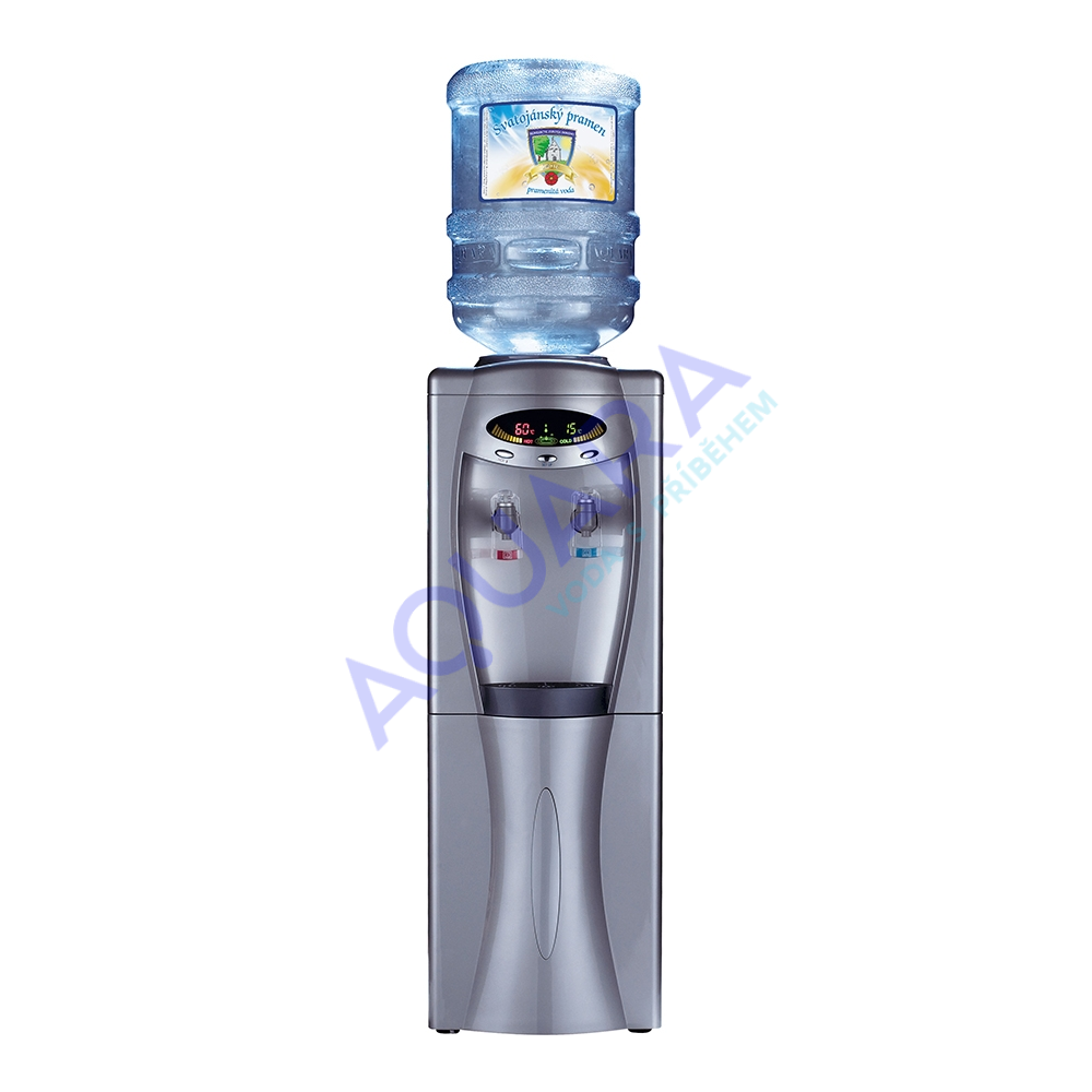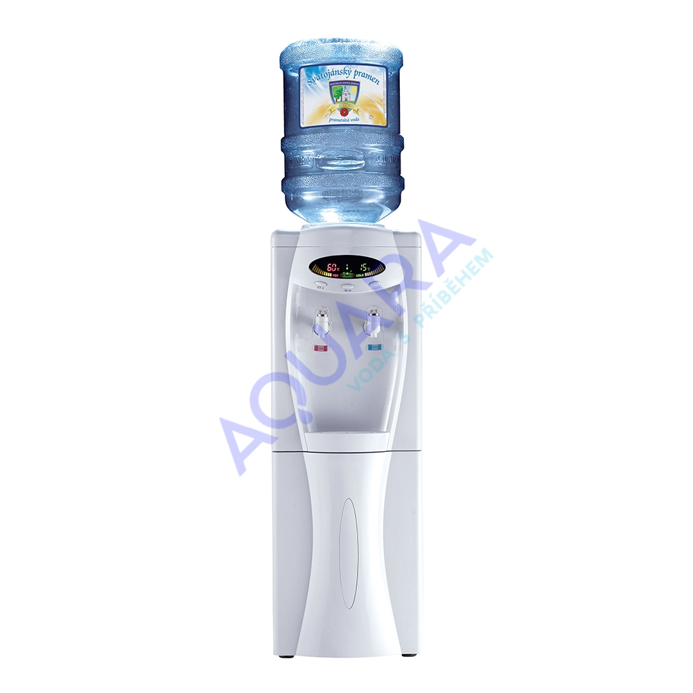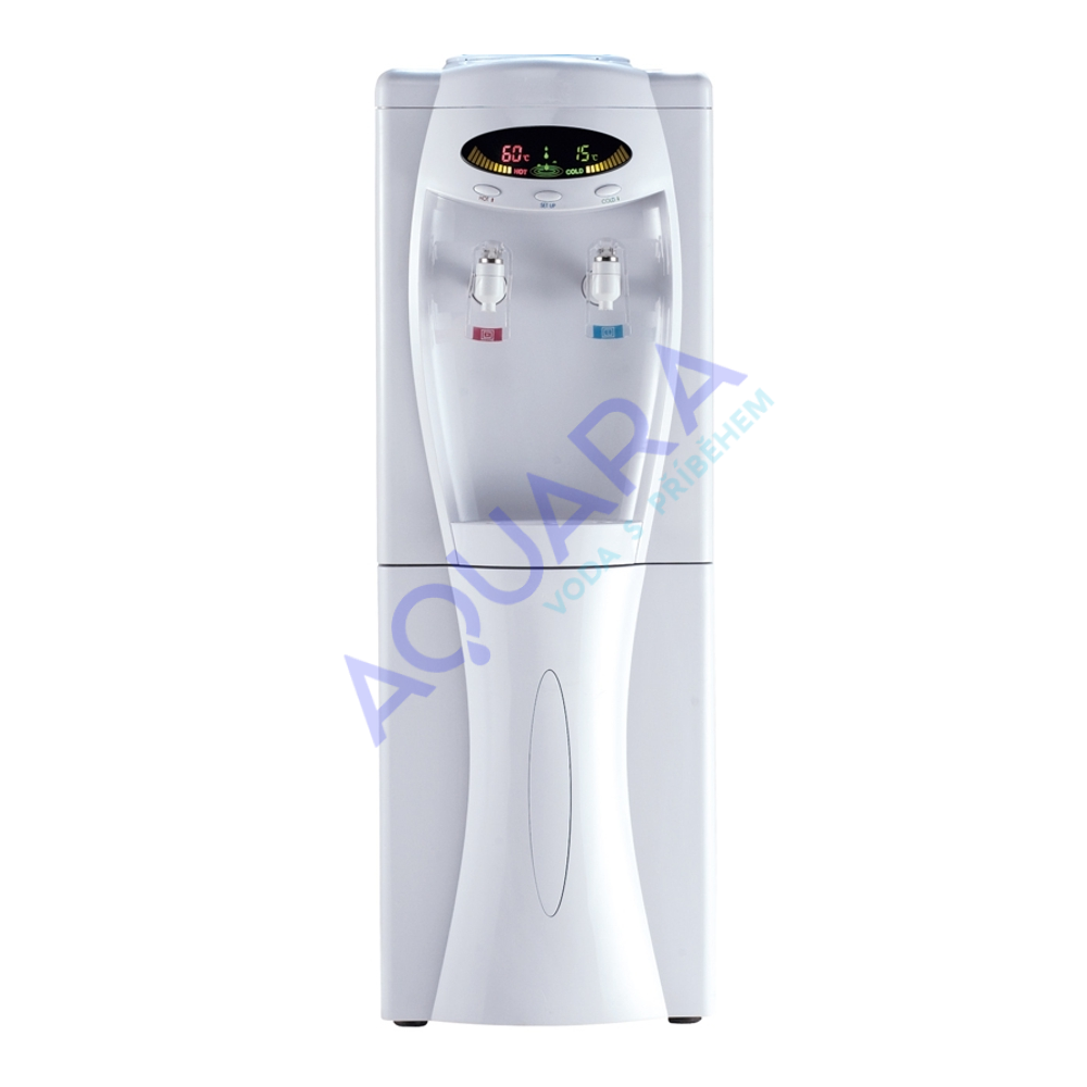 Vysoký podlahový výdejník, aquamat, v bílé nebo stříbrné barvě na studenou a horkou vodu vybavený programovatelným elektronickým displejem, který ukazuje teplotu studené a horké vody. Boky přístroje jsou z bílého, stříbrného, plechu a přední část z bílého či stříbrného plastu. Na digitálním displeji lze vypnout či zapnout ohřev a chlazení, takže je možnost při vypnutí ohřevu čerpat z červeného kohoutku vodu nechlazenou a používat aquamat k výdeji vody chlazené a nechlazené (pokojová teplota). Je určený k postavení na zem. Uživatel má možnost si dle svého uvážení naprogramovat jak teplotu studené, tak teplotu horké vody.