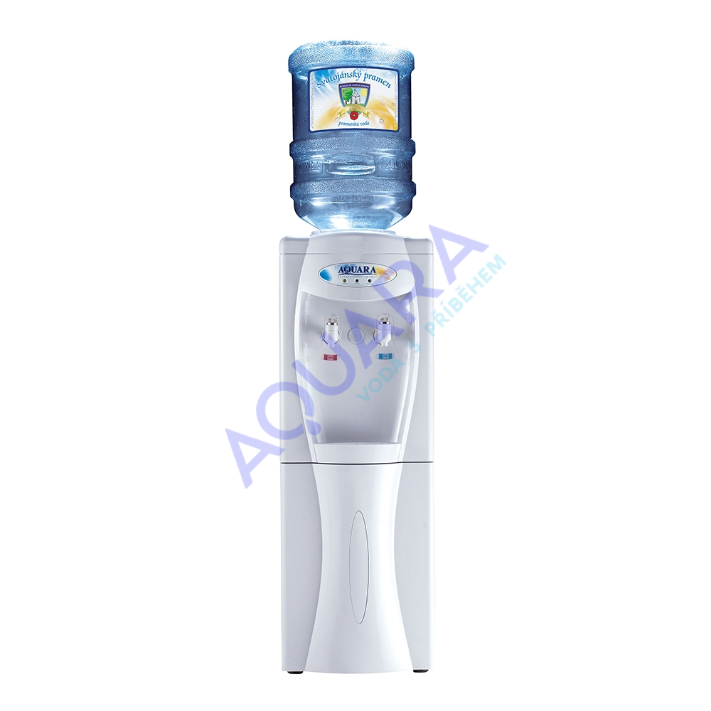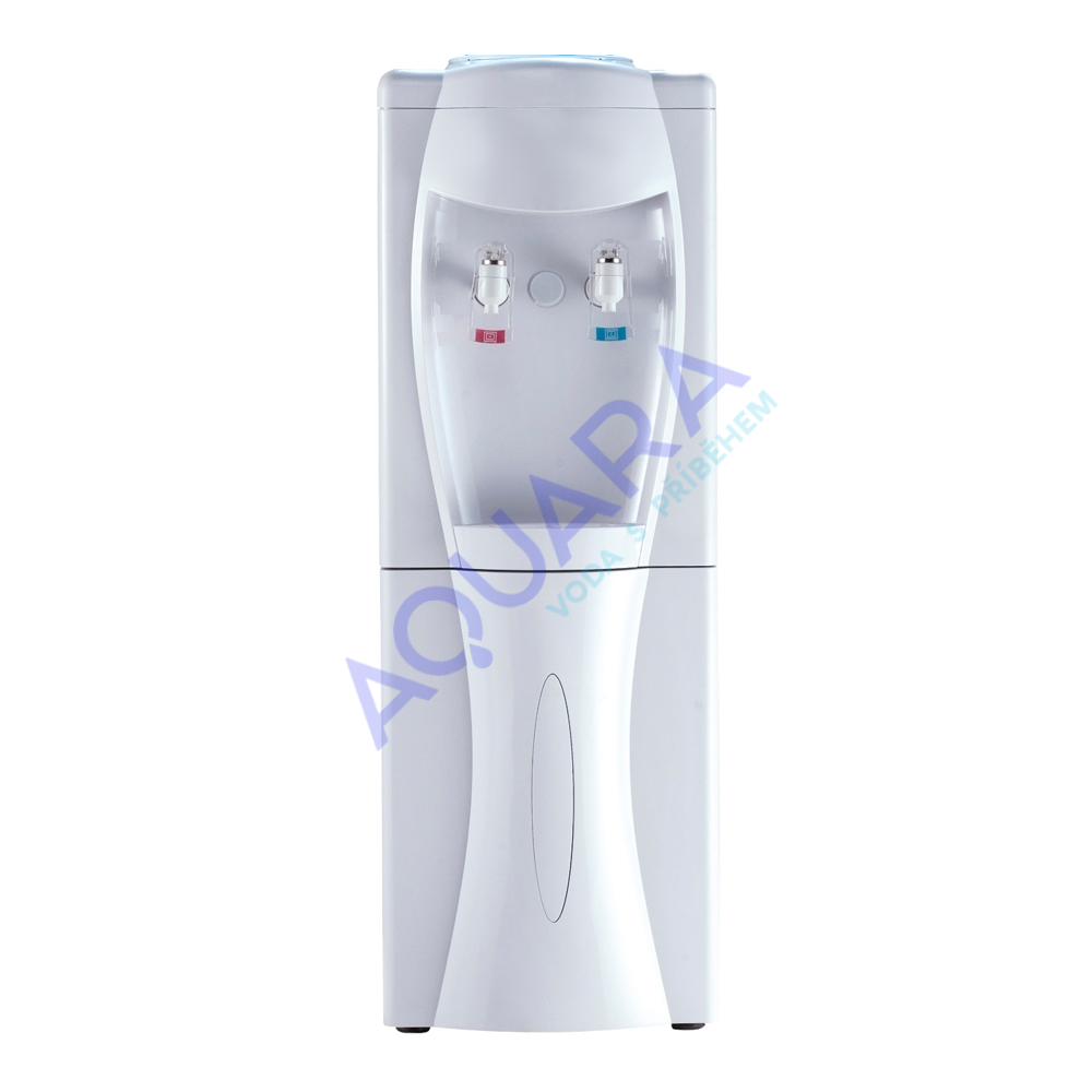 Vysoký podlahový výdejník, aquamat, v bílé barvě na studenou a horkou vodu určený k postavení na zem. Boky přístroje jsou z bílého plechu a přední část z bílého plastu. Na zadní straně výdejníku se samostatně vypíná či zapíná ohřev a chlazení, takže je možnost při vypnutí ohřevu čerpat z červeného kohoutku vodu nechlazenou a používat aquamat k výdeji vody chlazené a nechlazené (pokojová teplota).