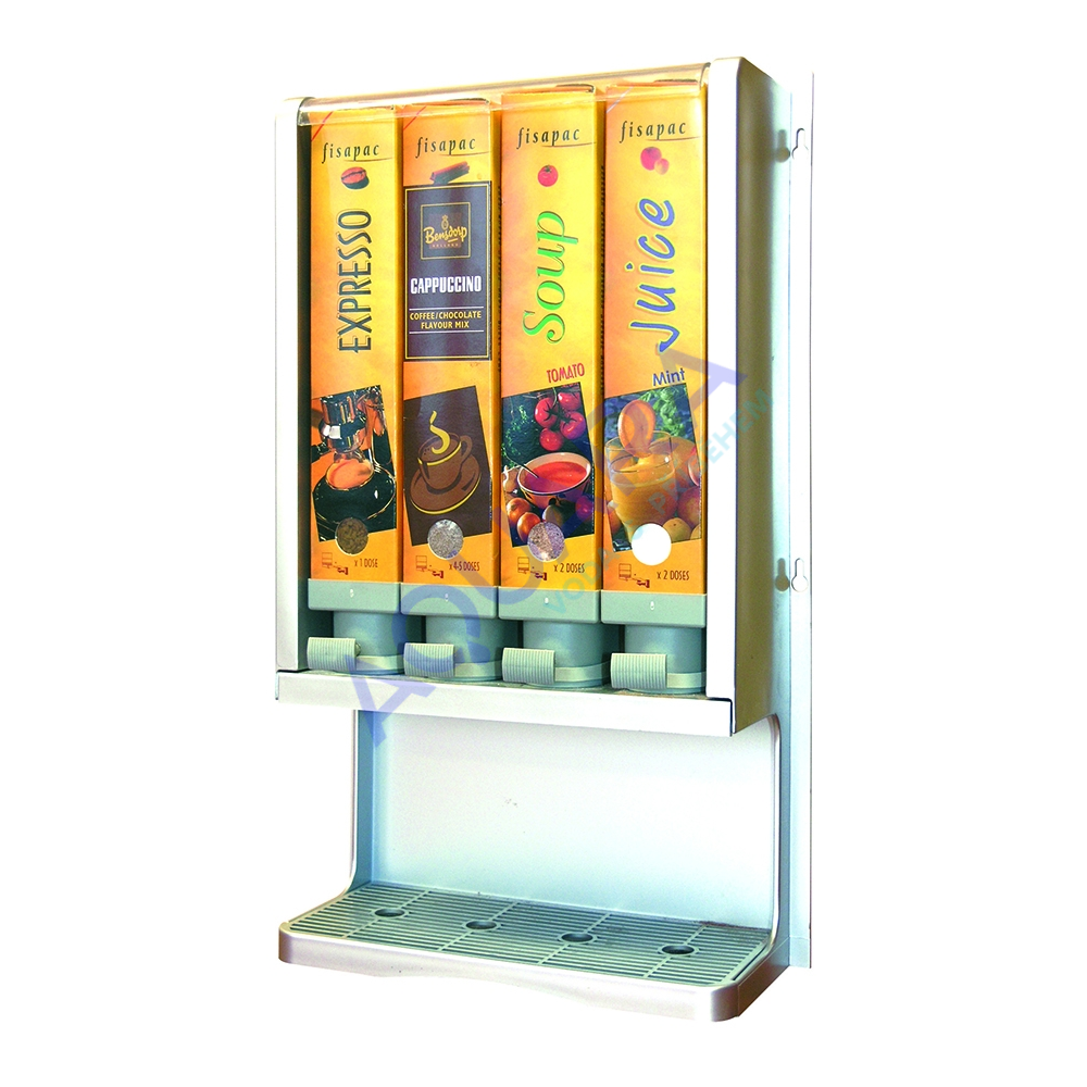 Zásobník je možno upevnit na bok výdejníku na vodu či na stěnu vedle výdejníku. Jedná se o elegantní řešení pro ty, kteří mají zájem odebírat nápoje FISAPAC a nechtějí si pořizovat speciální výdejník.
