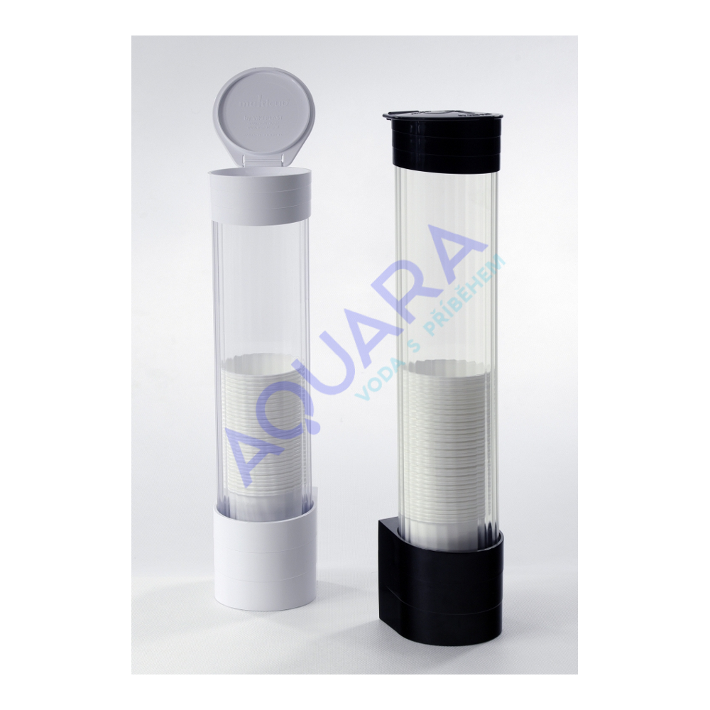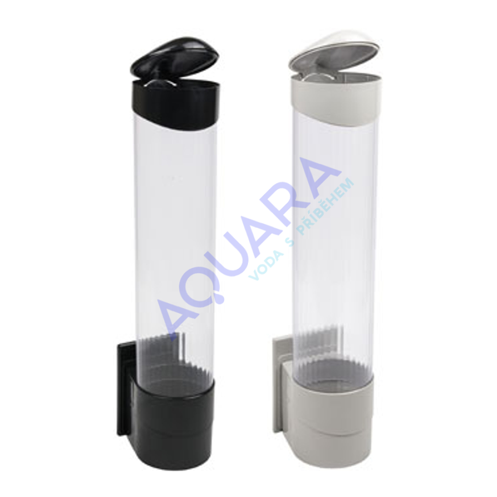 Zásobník na kelímky ve 3 barevných variantách, který se připevňuje na výdejník z boku. Vrchní a spodní část tubusu na kelímky je z barevného plastu a tělo je z průhledného plastu.